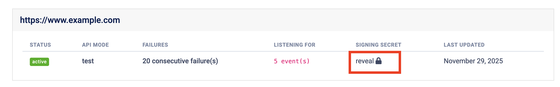 to obtain the secret for, and find the Signing Secret on the top right of the Delivery Logs page.