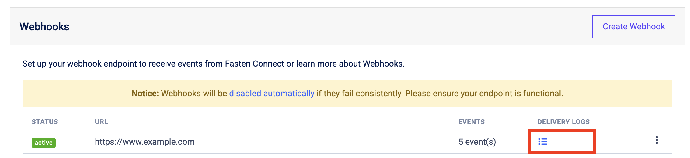 Find the Webhooks section of the Developer Portal. Click theDeveloper Logs for the endpoint that you want